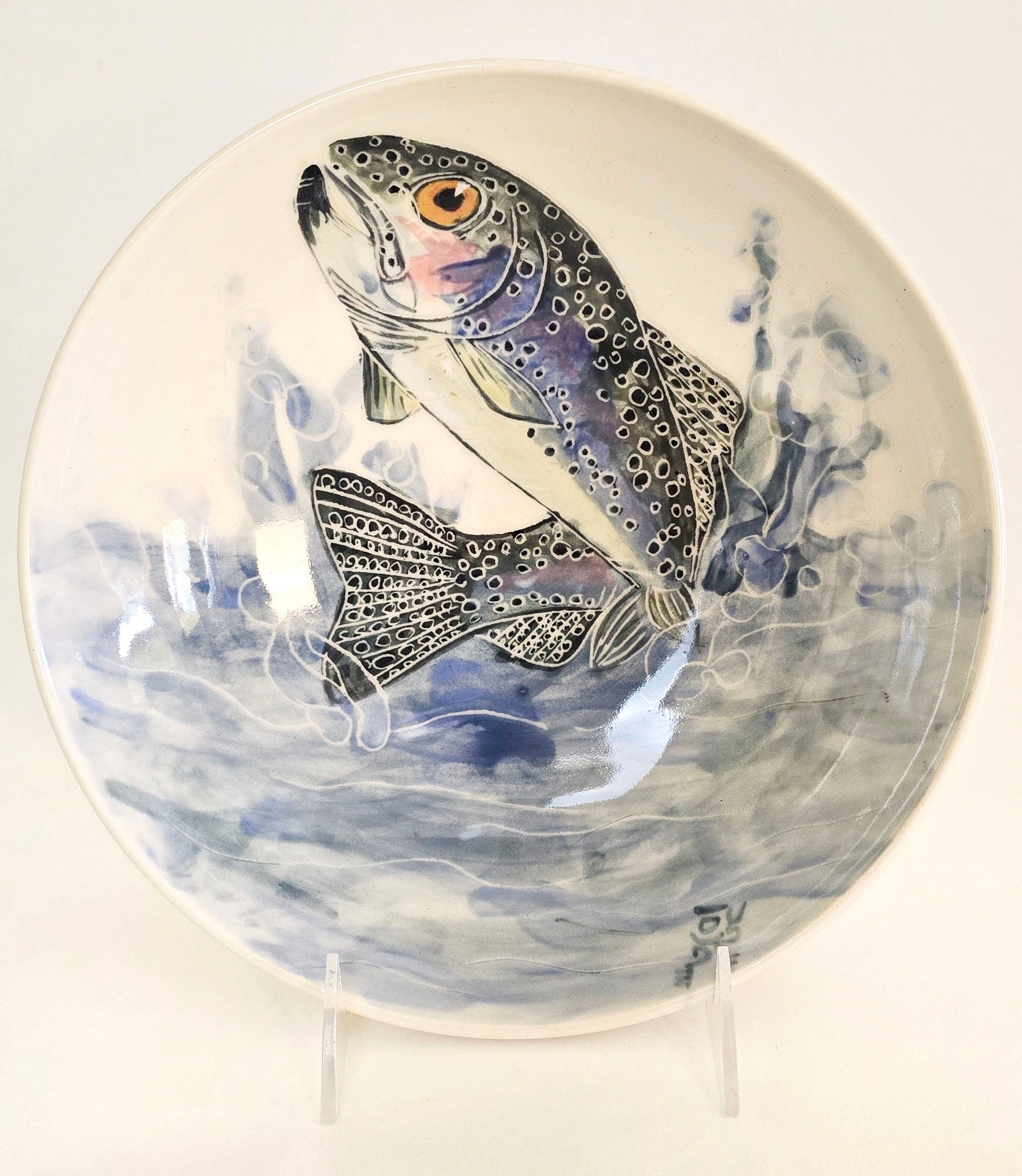 Stoneware Trout Bowl – Hand-Thrown with Sgraffito and Underglaze Detailing
