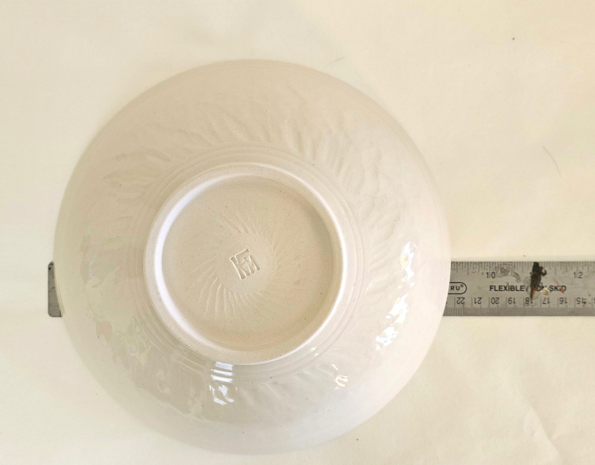 This wheel-thrown stoneware bowl features a dynamic trout design rendered through sgraffito and layered underglaze painting. Handcrafted by Kim Filiaggi using Laguna B-Mix clay, it balances form, function, and artistry—perfect as a serving bowl or a centerpiece display.